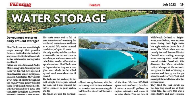 Top South Farming monthly recently did an article on Flexi Tanks NZ.