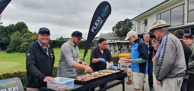 Anton (director), Jacky (operations manager) and Andre (general manager) set off bright and early for Pukekohe to prep the welcome breakfast we sponsored for the day. Anton and Andre were on the BBQ tools while Jacky and family friend Dan, hit the golf green.